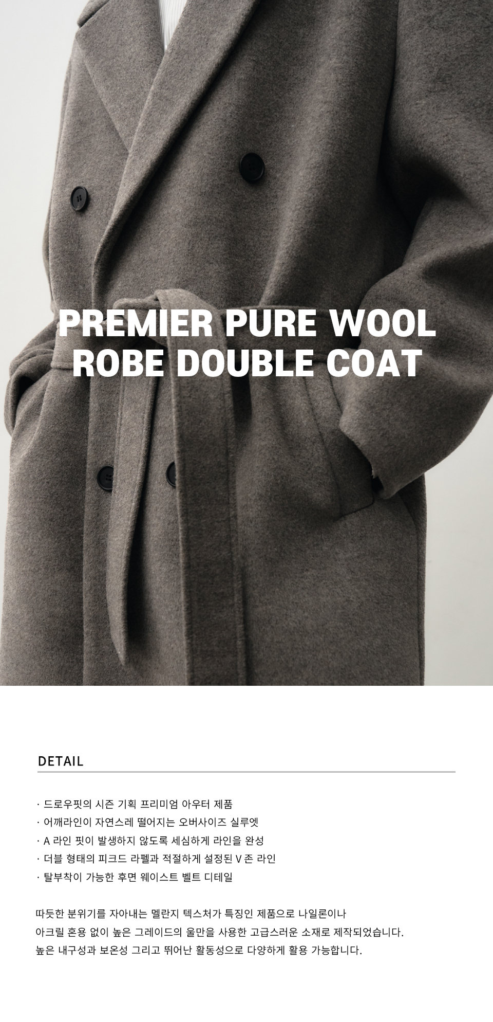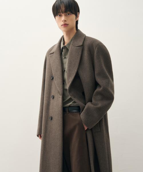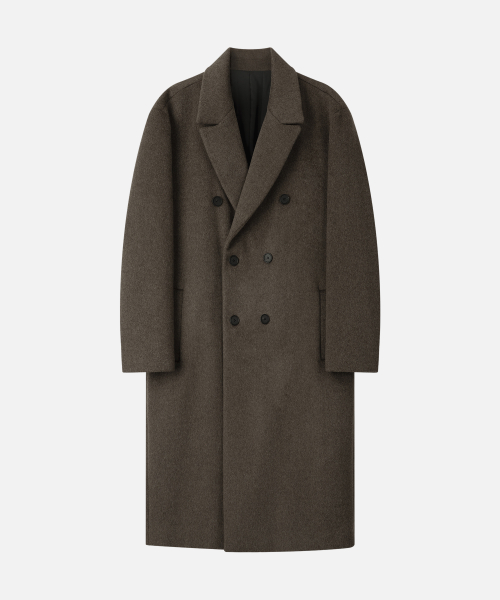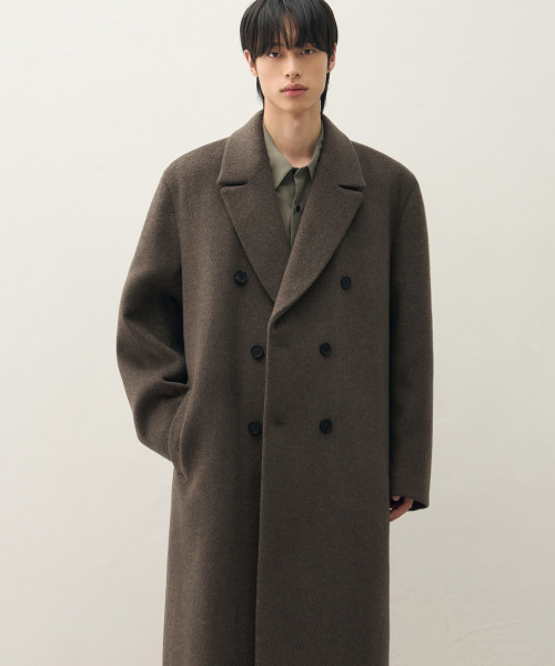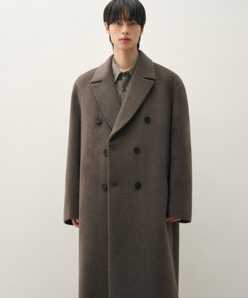 프리미어 퓨어 울 로브 더블 코트 [MELANGE BROWN]