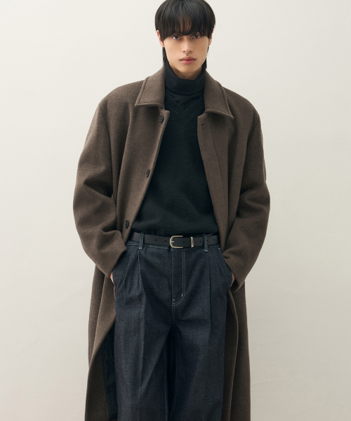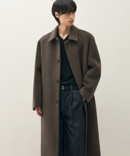 프리미어 퓨어 울 발마칸 코트 [MELANGE BROWN]