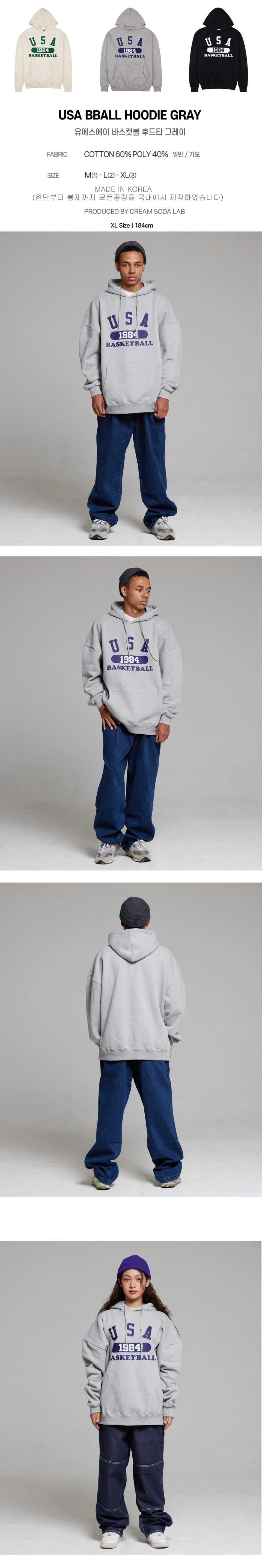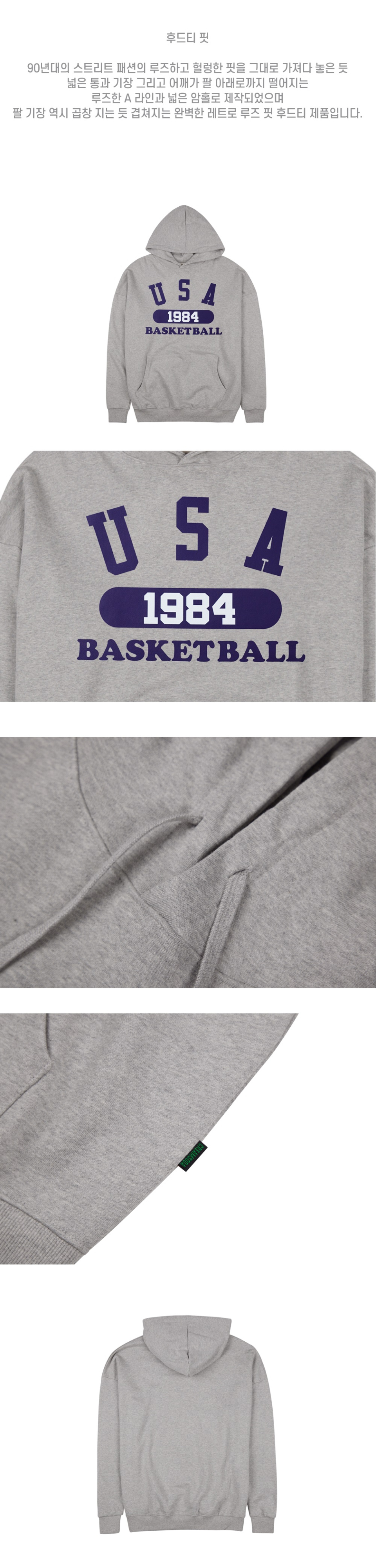 유에스에이 바스켓볼 후드티 그레이 네이비