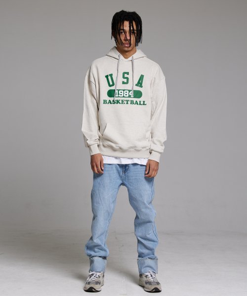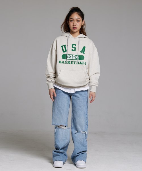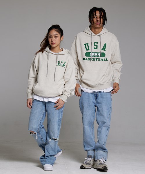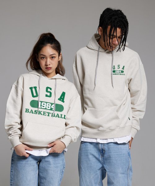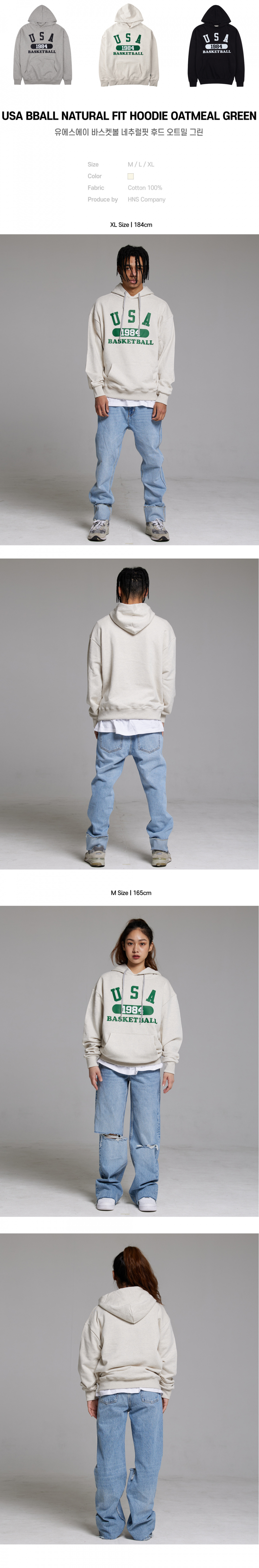 유에스에이 바스켓볼 후드티 오트밀 그린