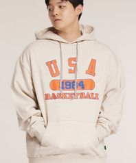 유에스에이 바스켓볼 후드티 오트밀 오렌지