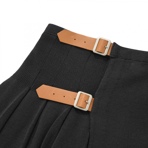 키르시 니트 랩 플리츠 스커트 [차콜]