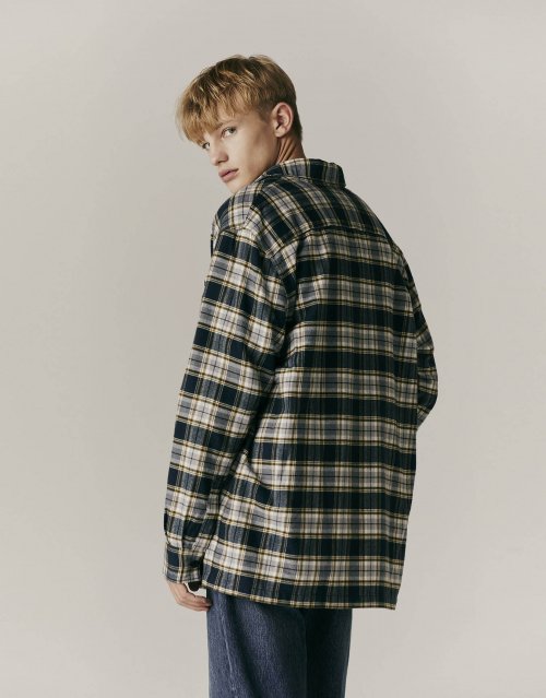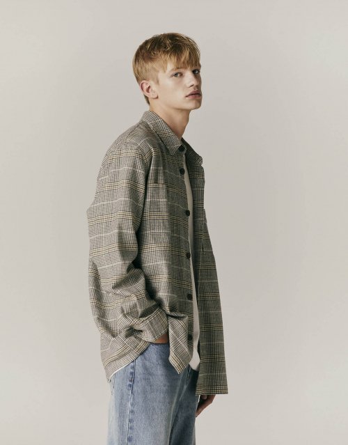 고밀도 시티보이 레귤러 오버핏 셔츠 [파우더 옐로 체크]
