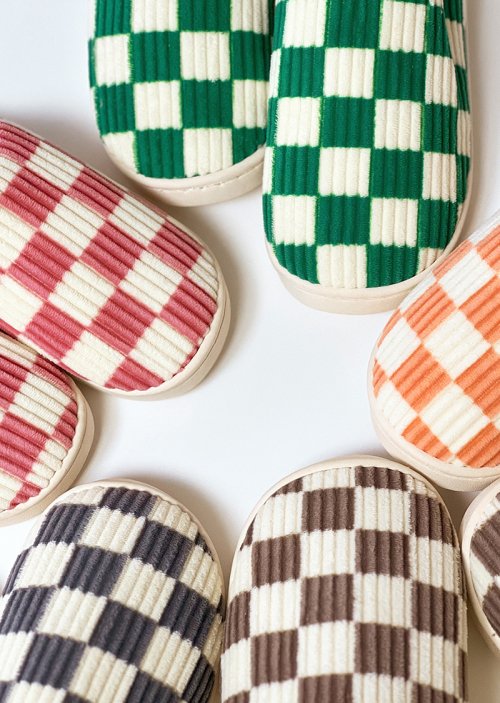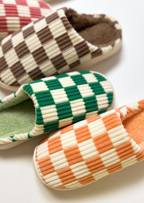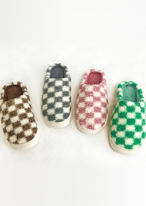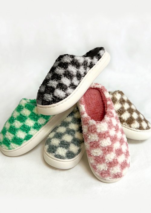 체커보드 극세사 털슬리퍼