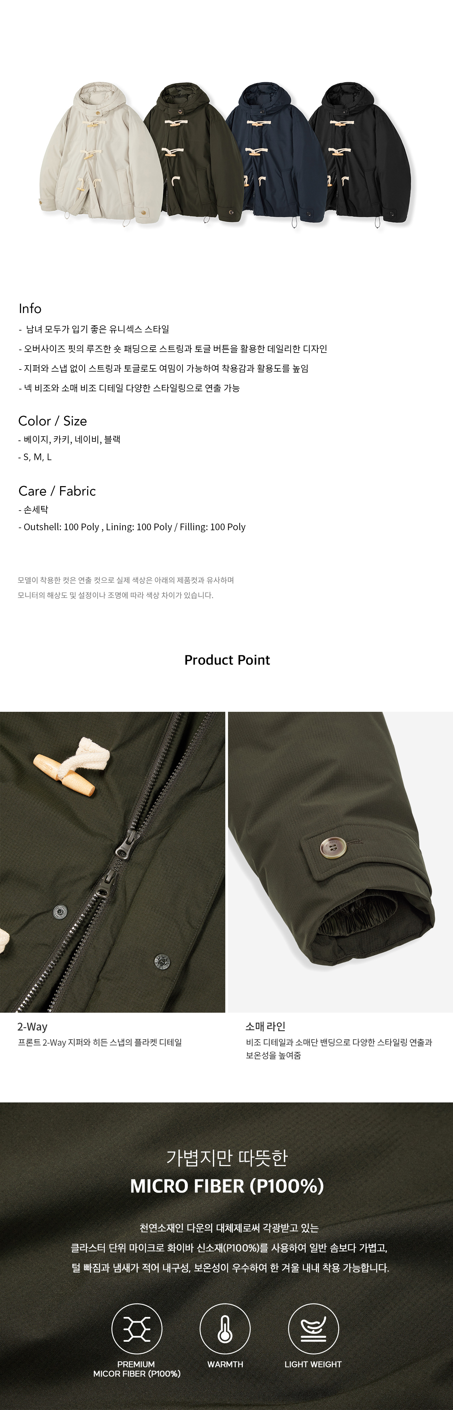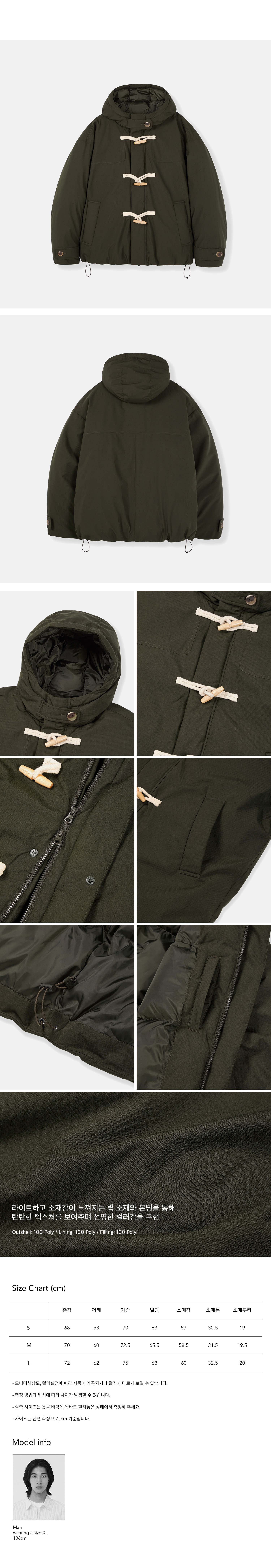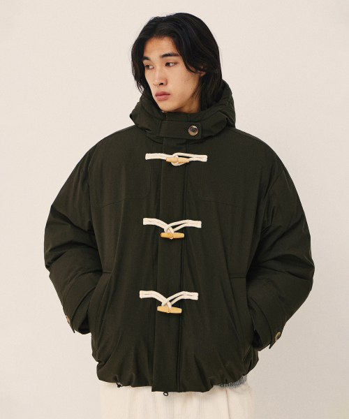 오버핏 2-WAY 더플 후드 숏패딩_카키