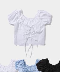 프릴 리본 스트랩 라운드넥 크롭 반팔 블라우스 셔츠_3COLOR
