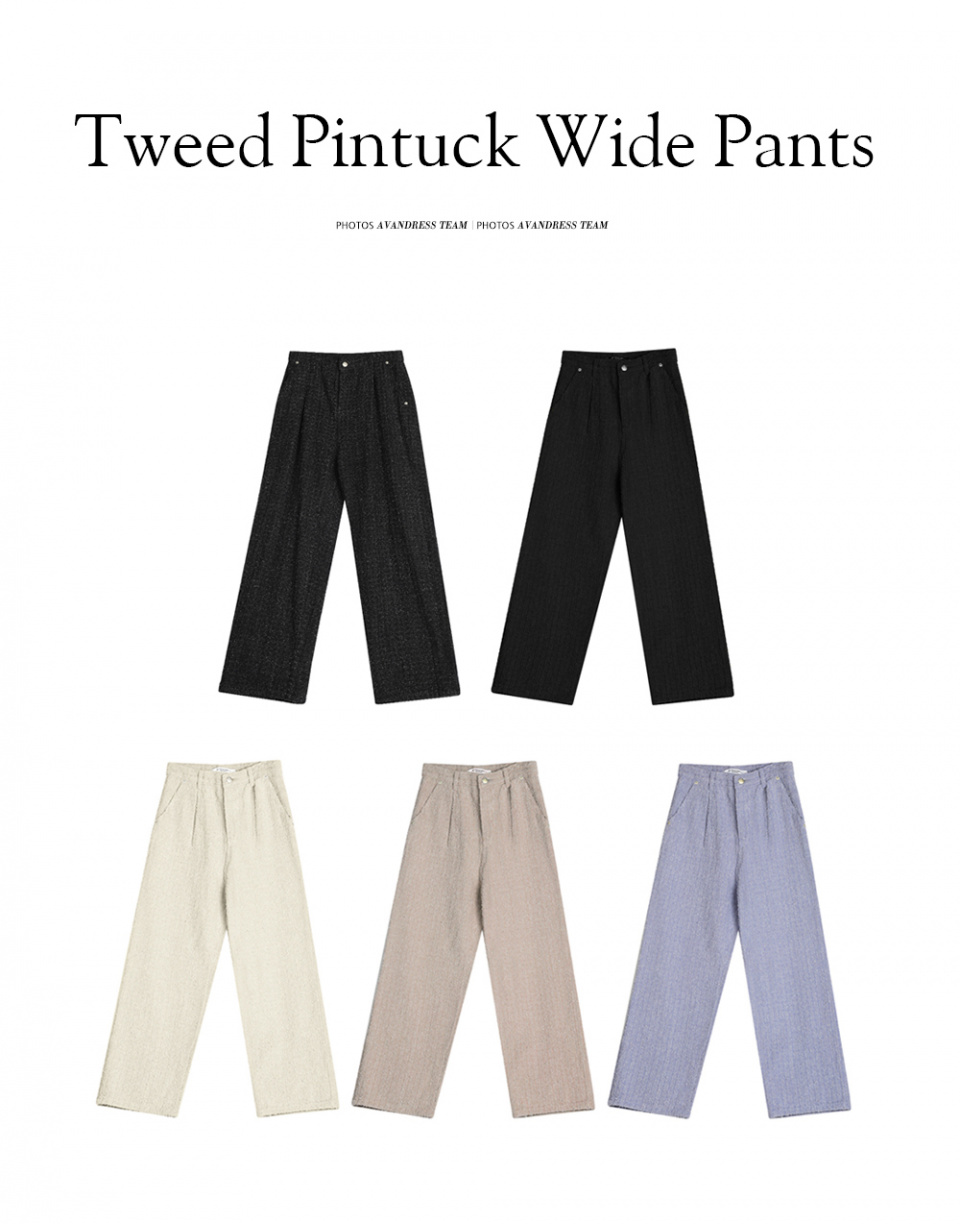 Tweed Pintuck Wide Pants - 5COL
