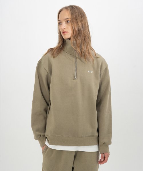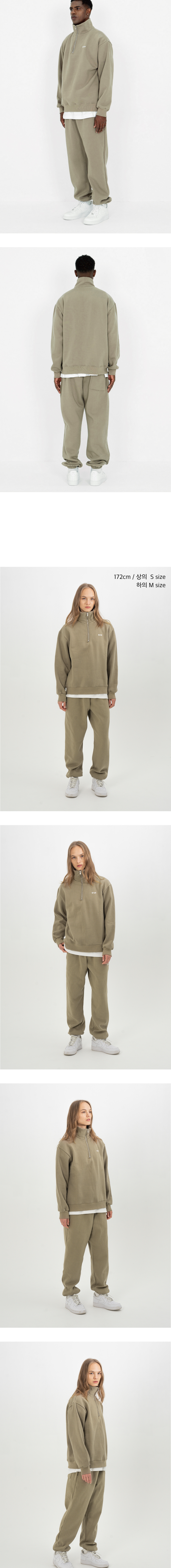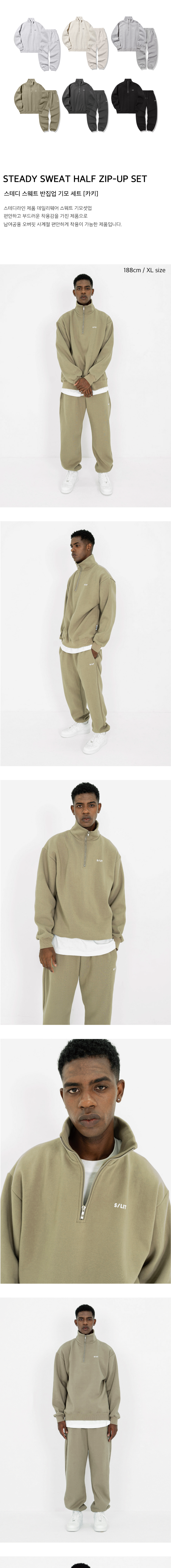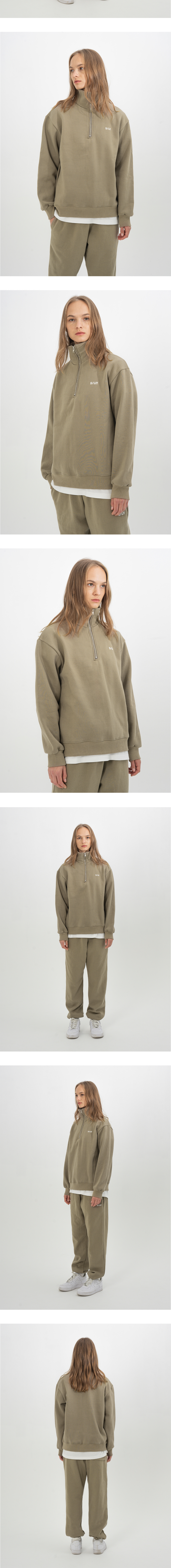 스테디 스웨트 기모 반집업 카키