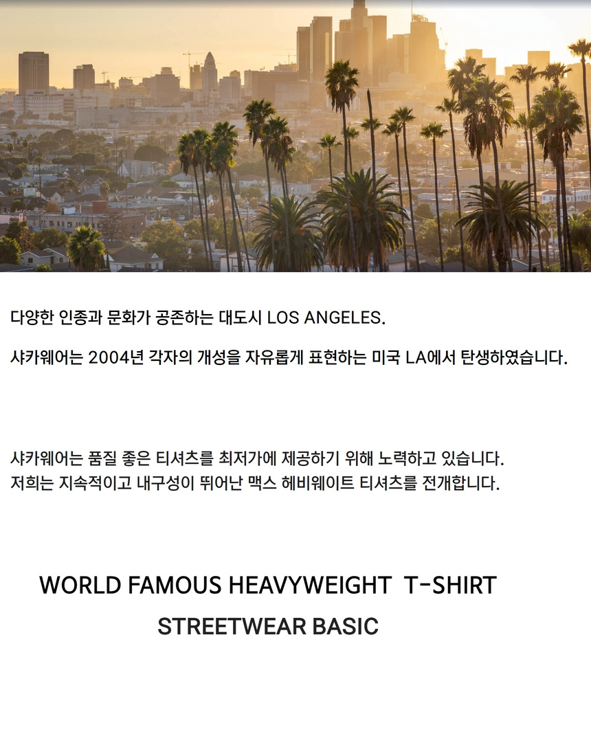 SHAKA WEAR(샤카웨어)는 경쟁력있는 가격에 최고의 품질의 티셔츠를 만들겠다는 하나의 목표로 설립되었습니다. 샤카의 가치를 이해하는 사람들에게 품질과 서비스를 제공하기 위하여 많은 노력을해왔습니다.