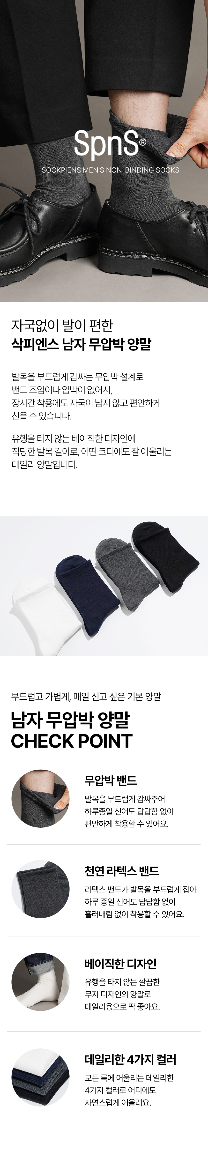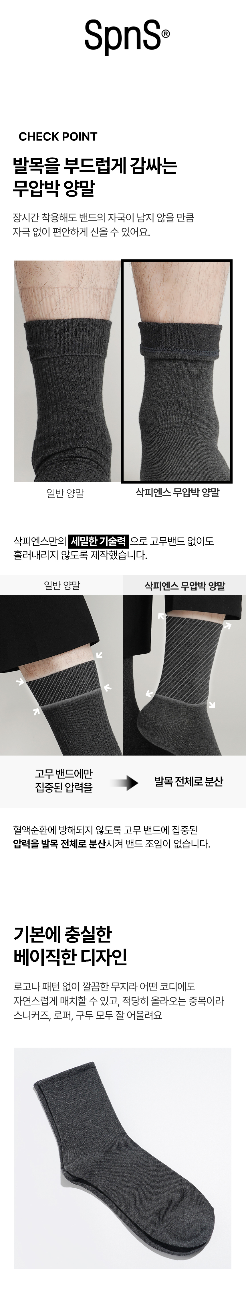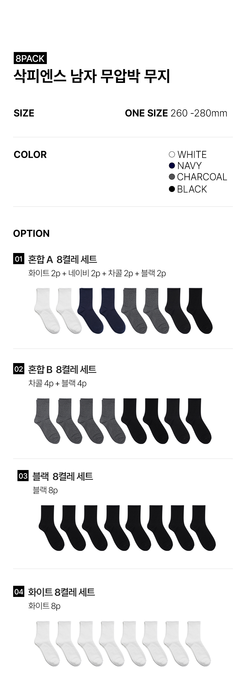 [8팩] 무압박 밴드 남자 무지 중목 양말