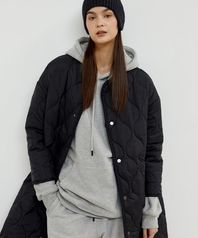 웨이브 오버핏 롱자켓 - 블랙