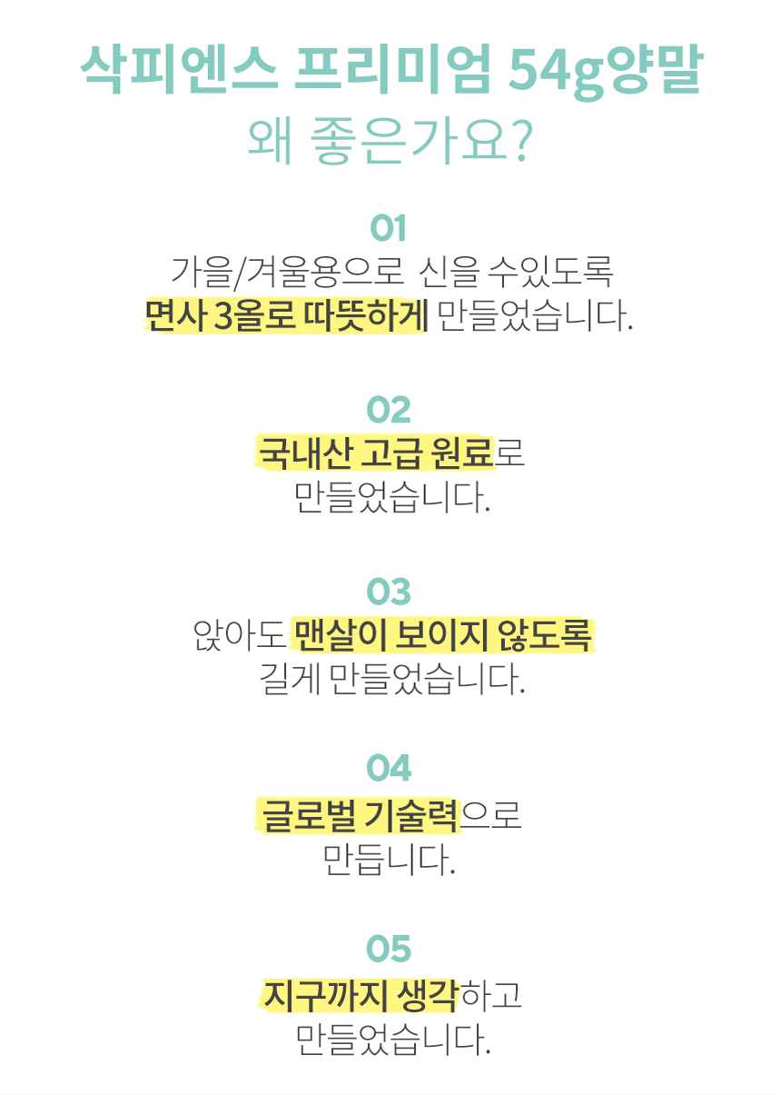 삭피엔스(SOCKPIENS)는 'A Better Step For Humanity'라는 슬로건 아래, 우리 모두의 더 나은 발걸음을 응원하는 레그 웨어 전문 브랜드입니다.