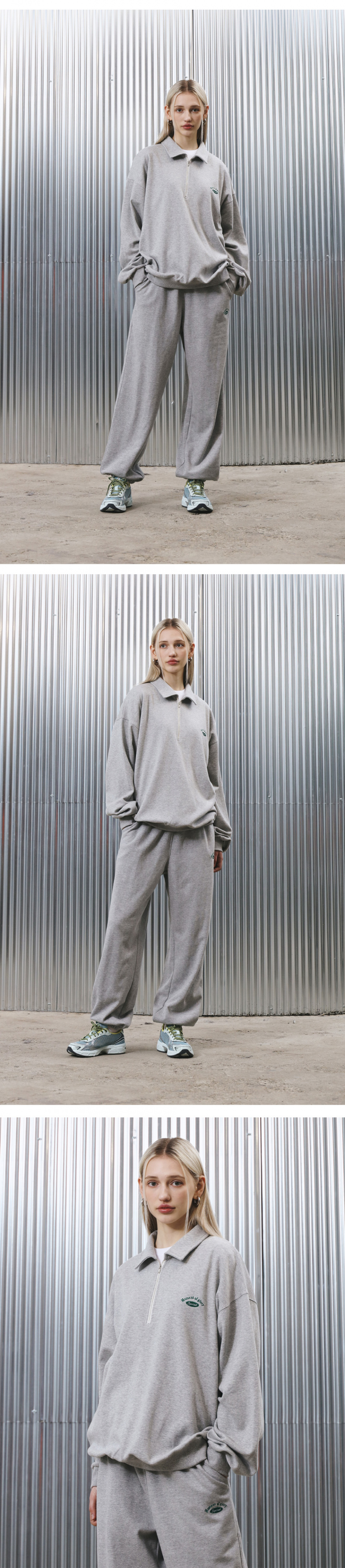 테니스 하프 집업-그레이
