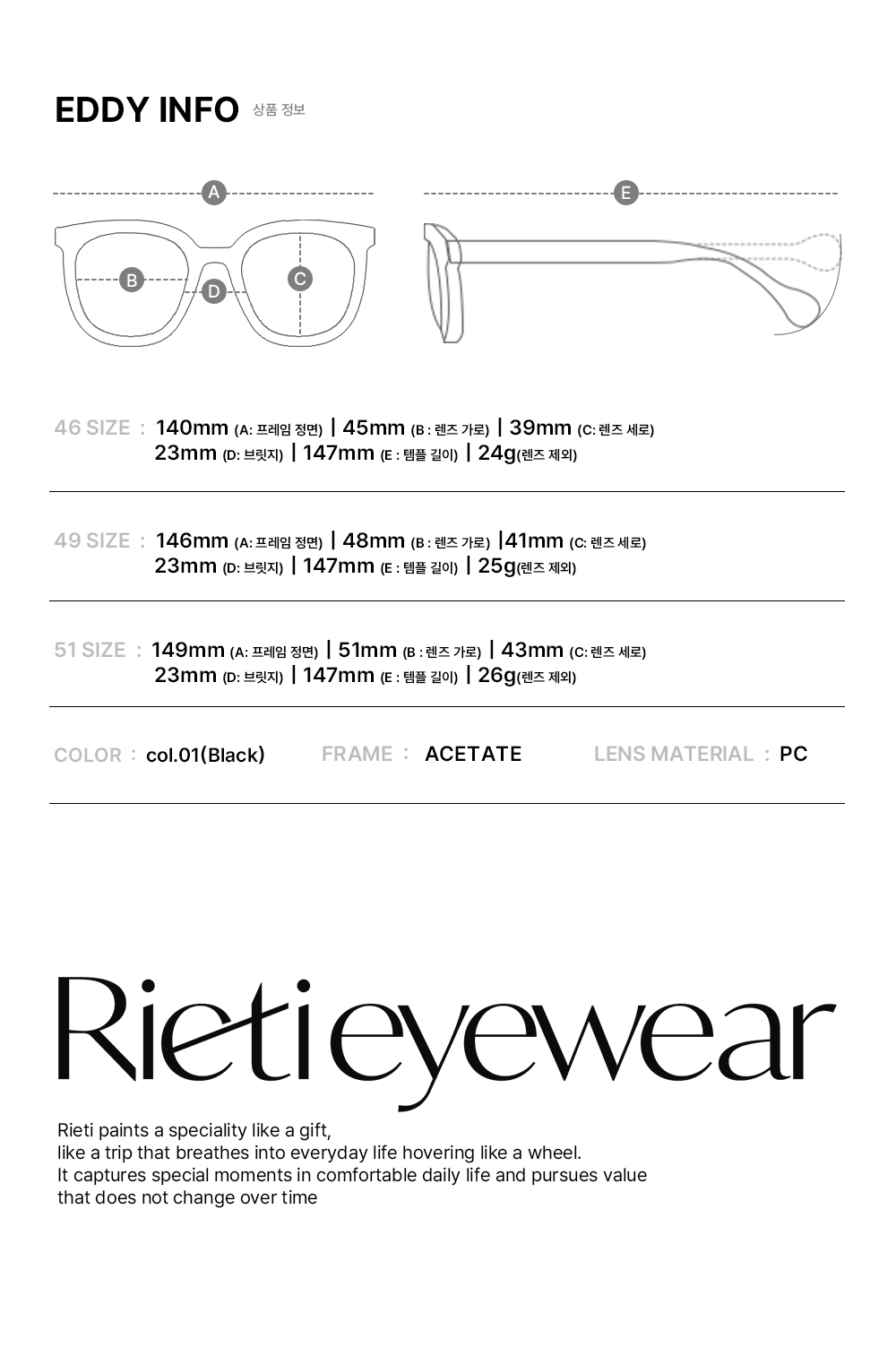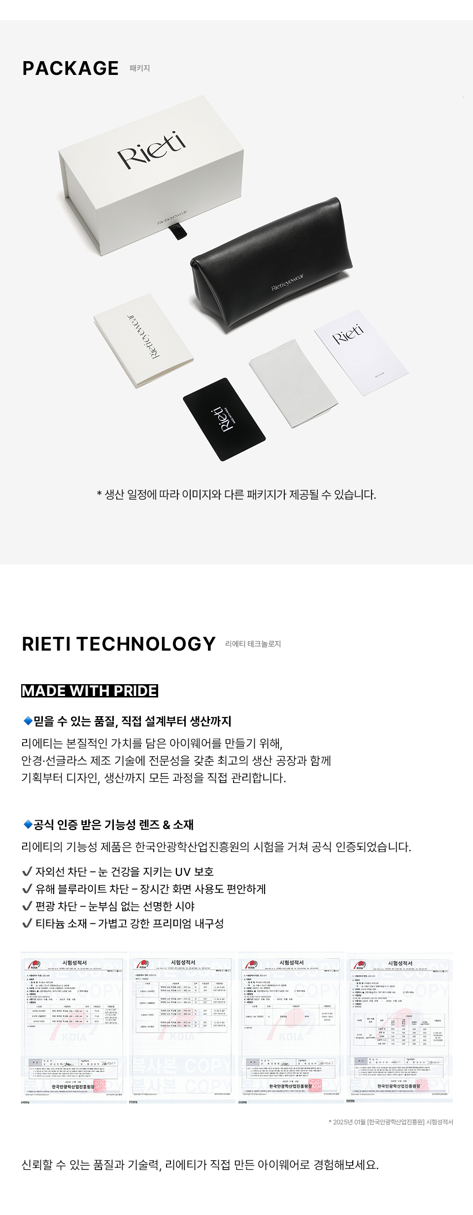 리에티(RIETI)는 아이웨어의 본질적 가치에 트렌디하고 편안한 무드를 더해 매 시즌 지속 가능한, 합리적인 아이템을 선보이는 브랜드입니다.