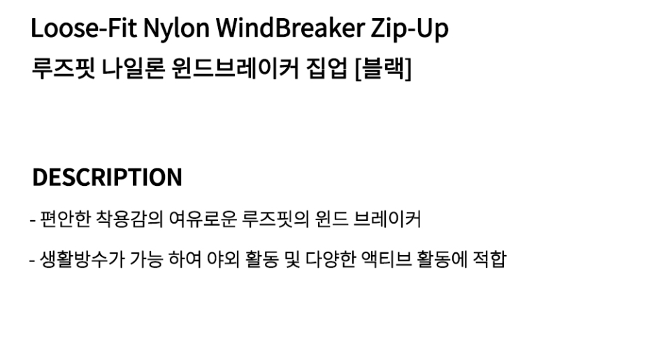 루즈핏 나일론 바람막이 윈드브레이커 집업 [블랙]