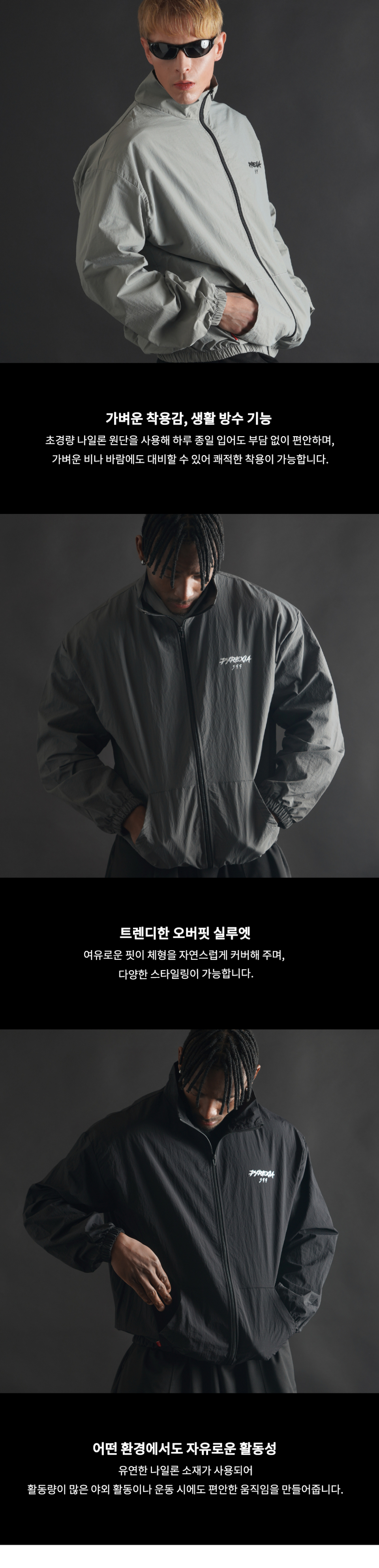 루즈핏 나일론 바람막이 윈드브레이커 집업 [차콜]
