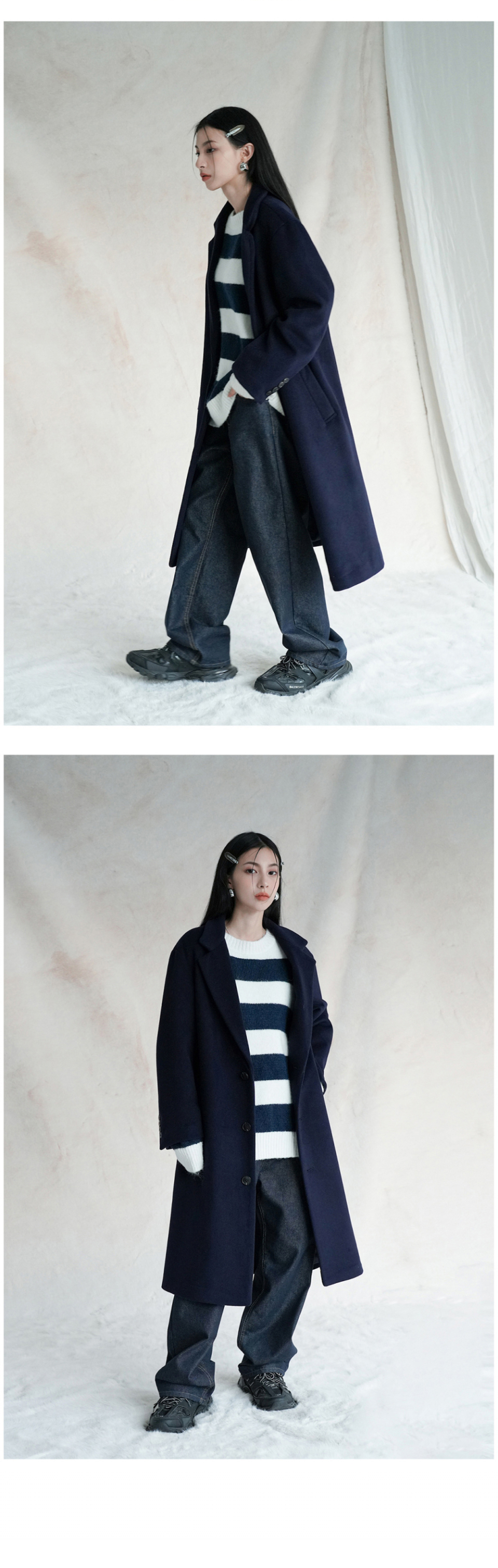 유니섹스 플랙스 롱 오버핏 코트 다크네이비