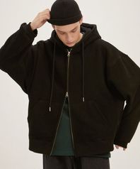 피치스킨 벌룬오버 후드집업 - 블랙