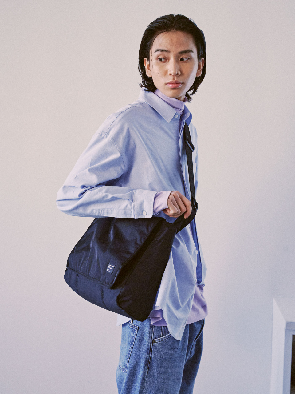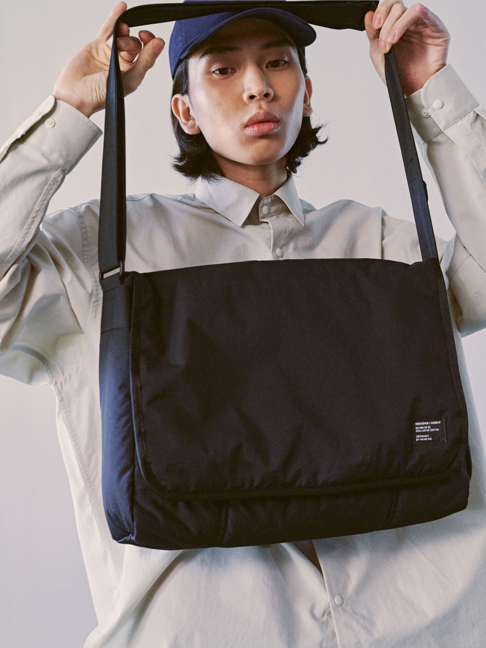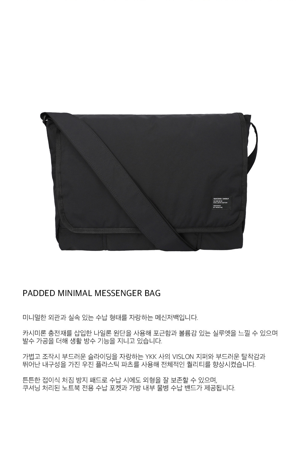 [네이키드니스X아노블리어] 패디드 미니멀 메신저 백 [블랙]
