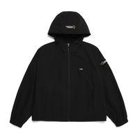 N242WFT960 여성 아델리 경량 우븐 후드 세미 크롭 집업 CARBON BLACK