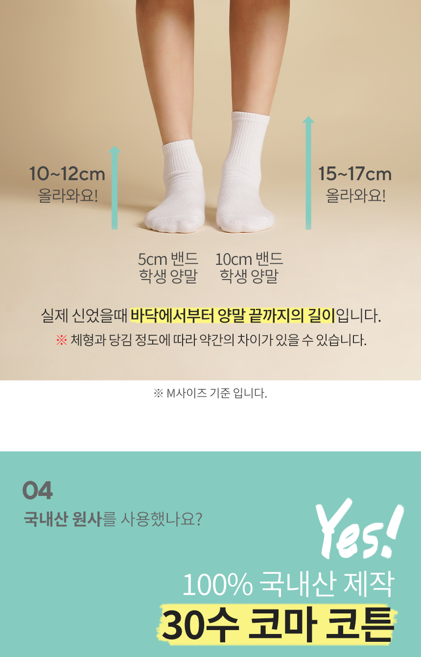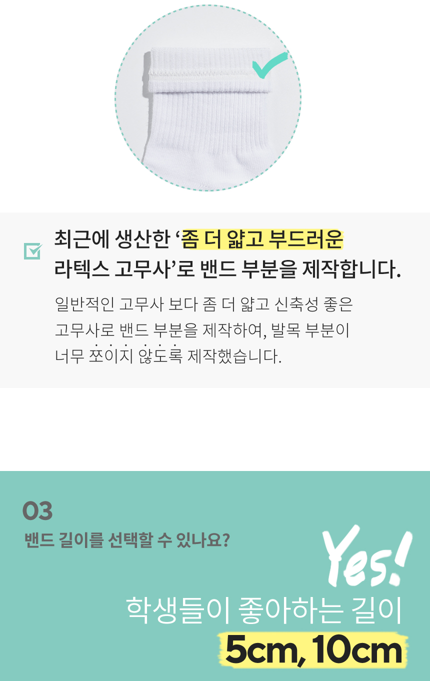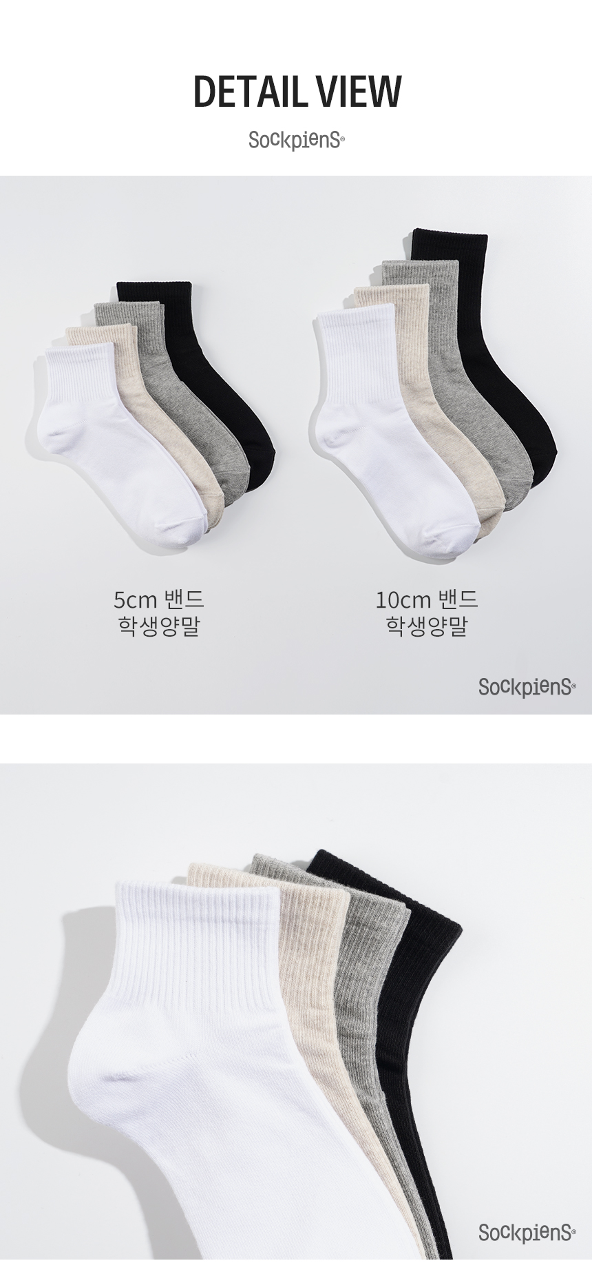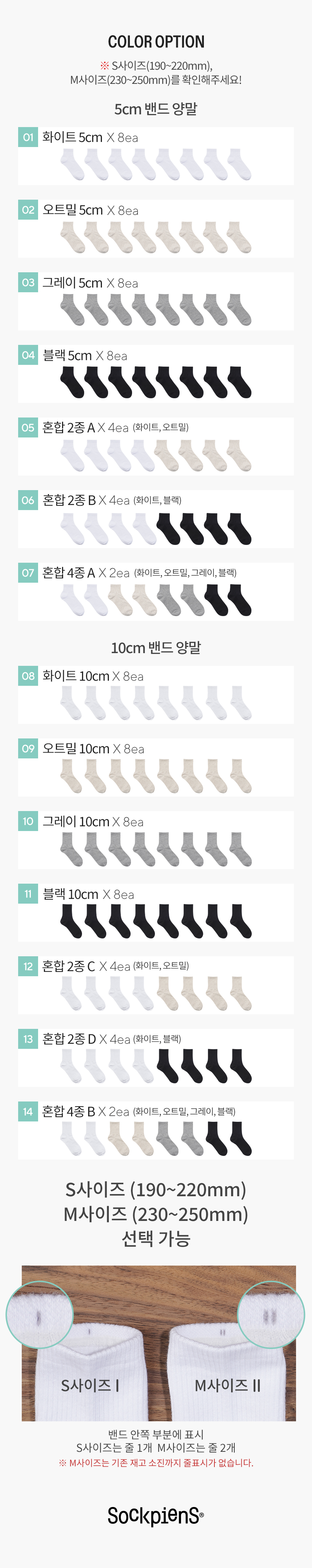 [8팩] 5cm 10cm 밴드 무지 단중목 양말