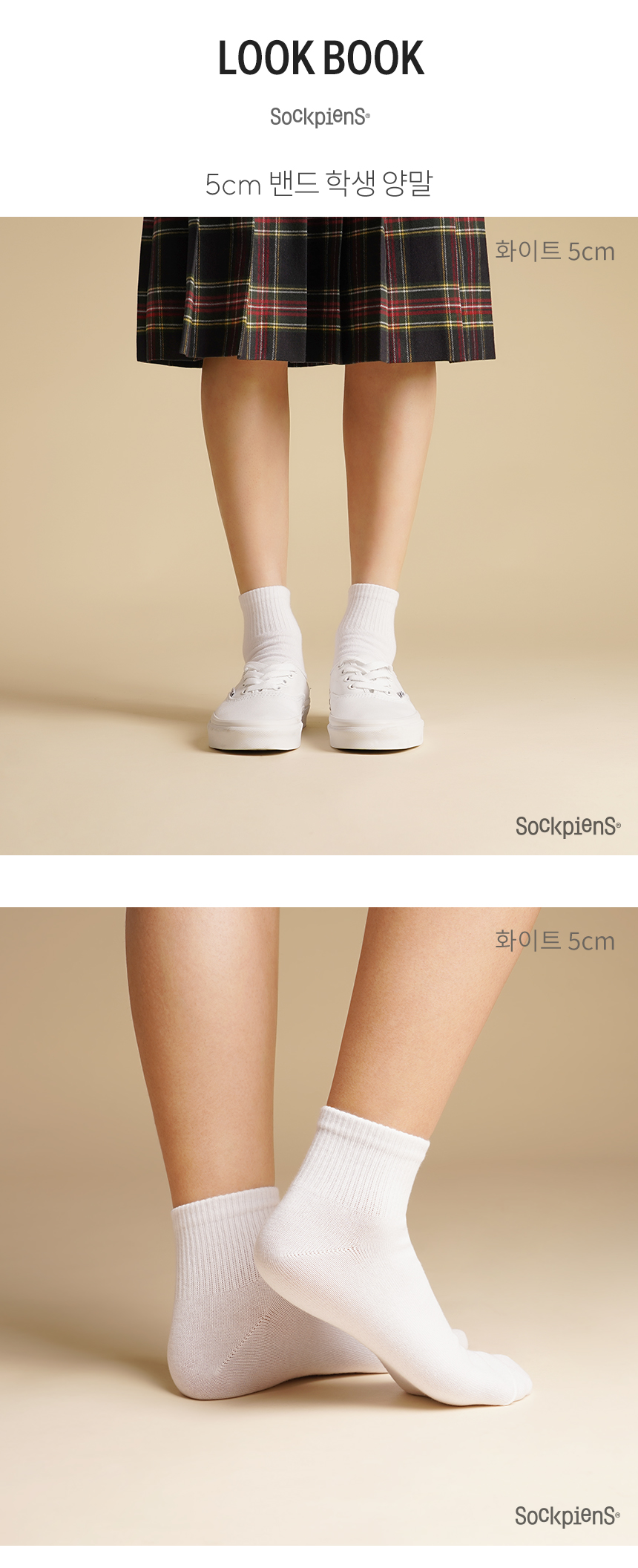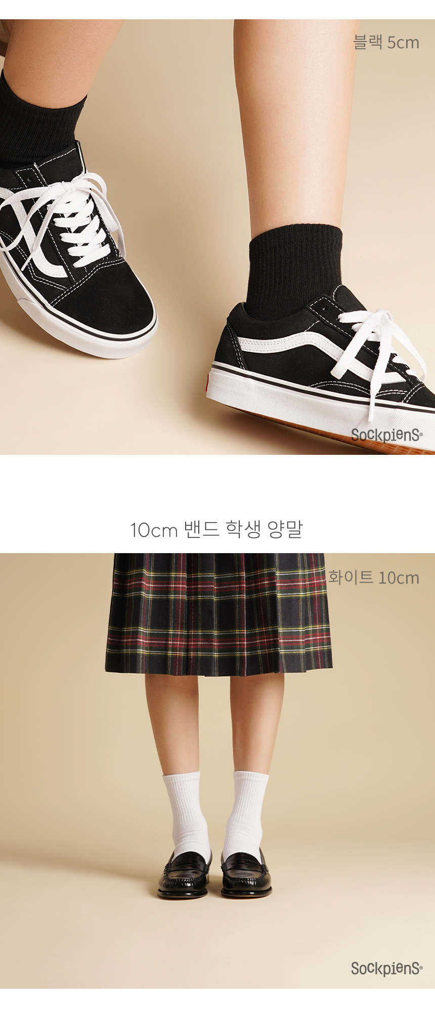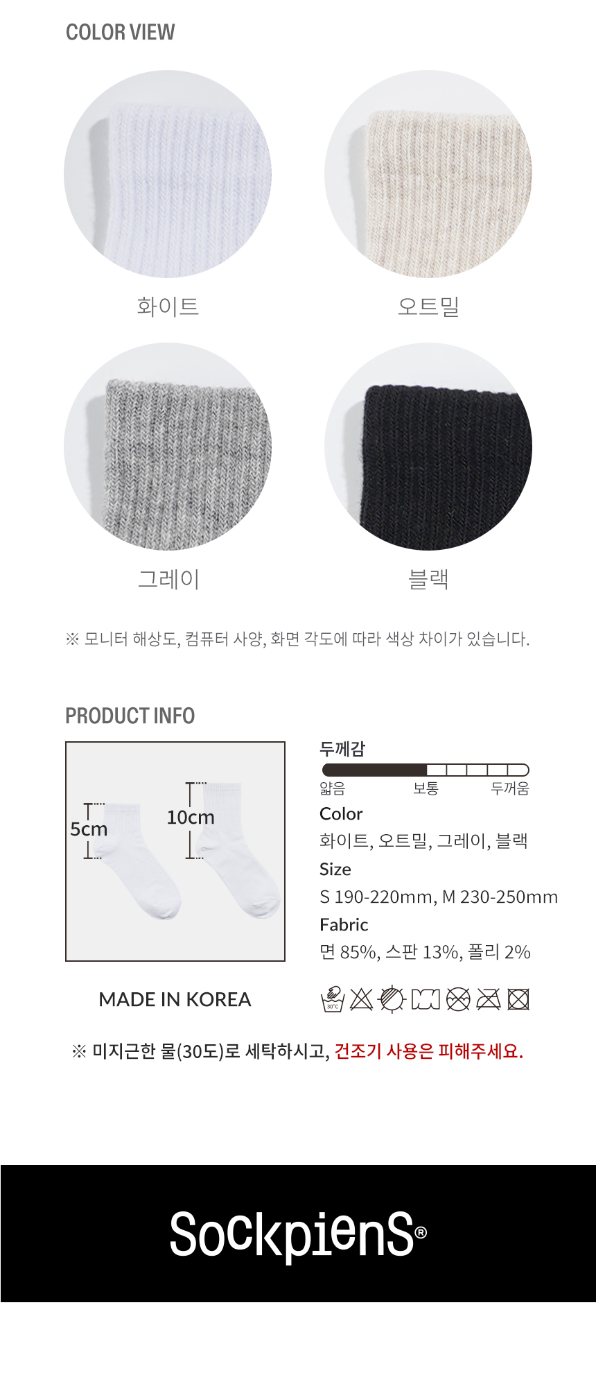 [8팩] 5cm 10cm 밴드 무지 단중목 양말