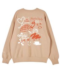 그라피티 오버핏 드롭숄더 맨투맨_피치