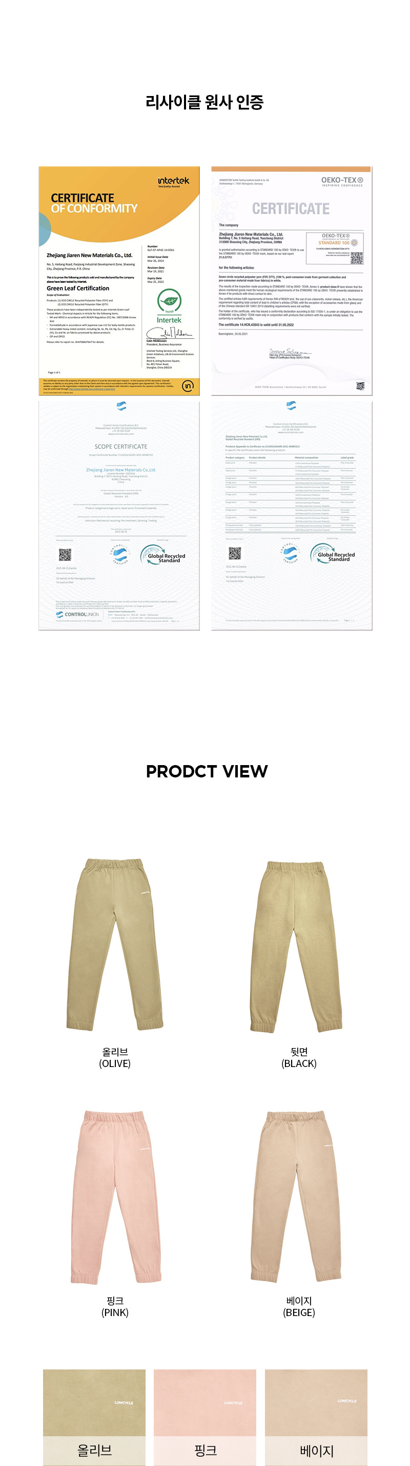 리사이클 쭈리 퍼 베이지 슬림핏 조거팬츠