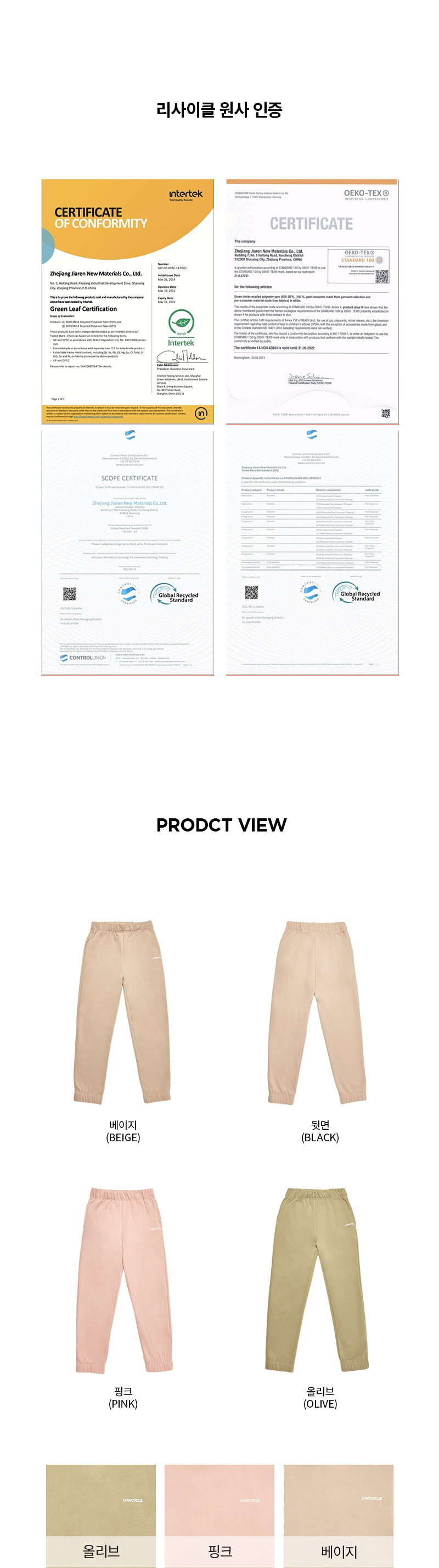 리사이클 쭈리 퍼 베이지 슬림핏 조거팬츠