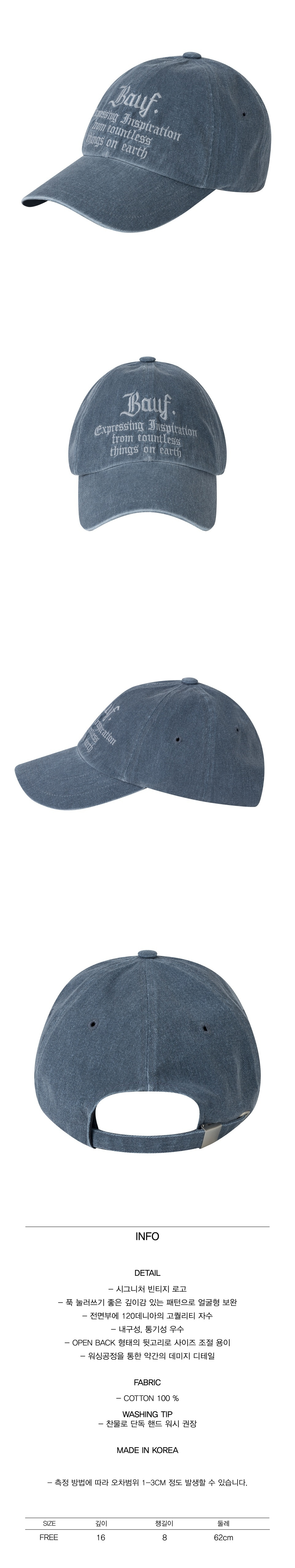 B 빈티지 워싱 볼캡 [워시드 네이비]
