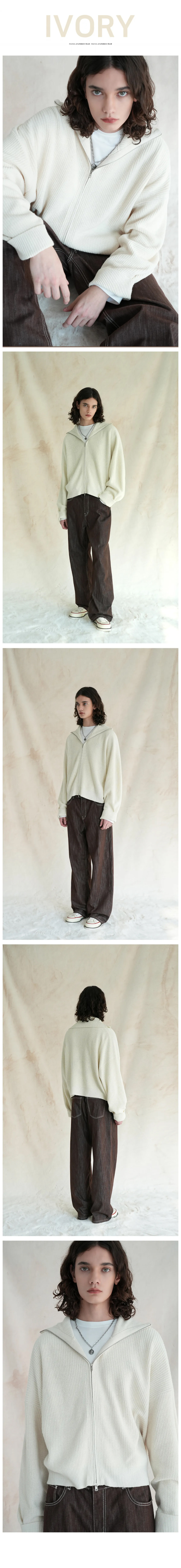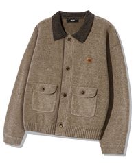 레더 패치 워크 벨벳 가디건 니트_베이지
