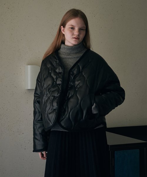 리버시블 덤블 퀄팅 패딩 - 블랙