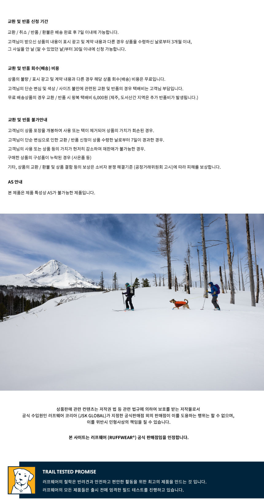 러프웨어(RUFFWEAR)는 그 이름만으로도 애견용품을 대표하는 최고급 브랜드로 미국 오리건주 밴드에 위치했습니다. 러프웨어의 철학은 개와 사람이 동료애를 느끼며 아웃도어 활동을 안전하고 편안하게 할 수 있는 최고급 아웃도어 애견용품을 만드는 것이며, 이를 위해 제품의 디자인, 소재를 그 목적에 맞게 설계/제작하고 있으며 지속적인 제품 개발을 통해 최고의 애견용품 업체로의 위상을 굳건해 하고 있습니다.