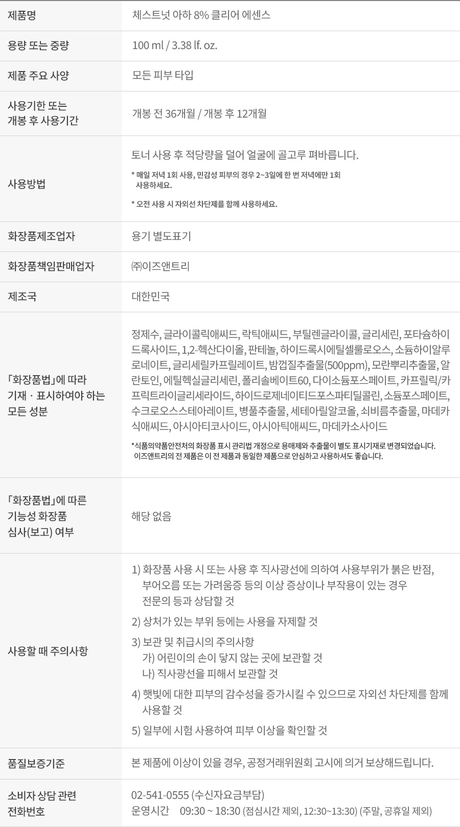 체스트넛 아하 8% 클리어 에센스 100ml (증정: 어니언 플루이드 선 2ml 2EA)