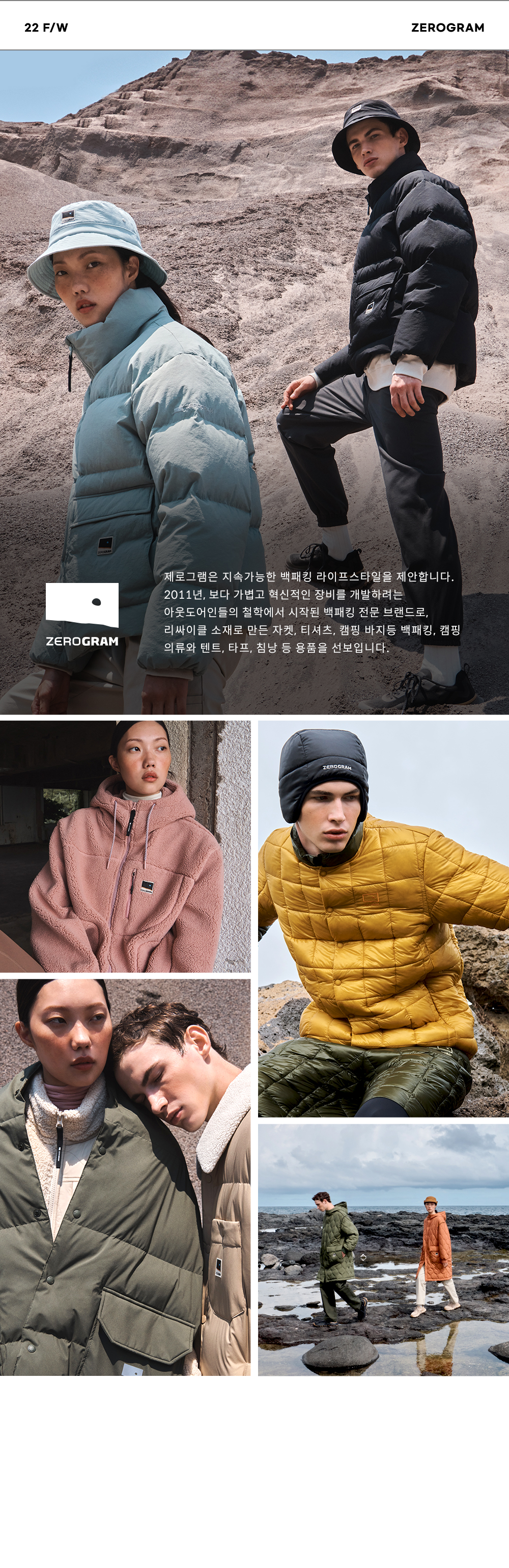 제로그램(ZEROGRAM)은 2011년, 보다 가볍고 혁신적인 장비를 개발하려는 아웃도어 애호가들의 철학에서 시작된 브랜드입니다. 꼭 필요한 장비로 간편하고 가볍게 자연을 더 깊숙이 즐기고, 환경에 미치는 영향을 최소화하겠다는 생각을 하였습니다. 'Go light, Get more'를 슬로건으로 초경량 장비개발에서 나아가 지속 가능한 아웃도어 라이프 스타일을 제안합니다.