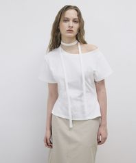 TIE STRAP ONE-SHOULDER T-SHIRT - WHITE