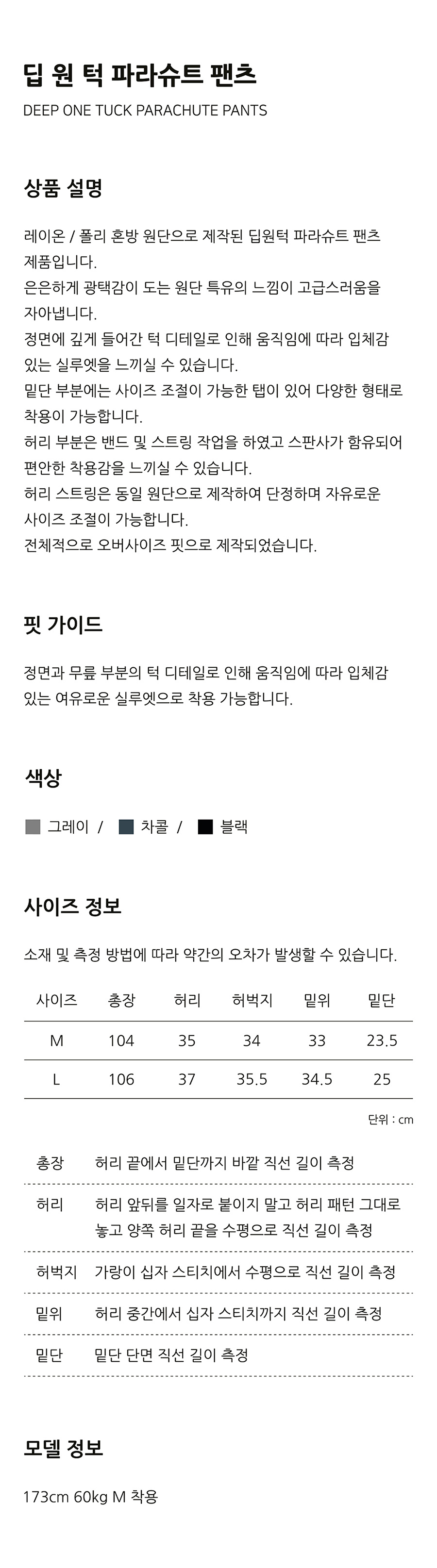 Deep One Tuck Parachute Pants [3 Colors]