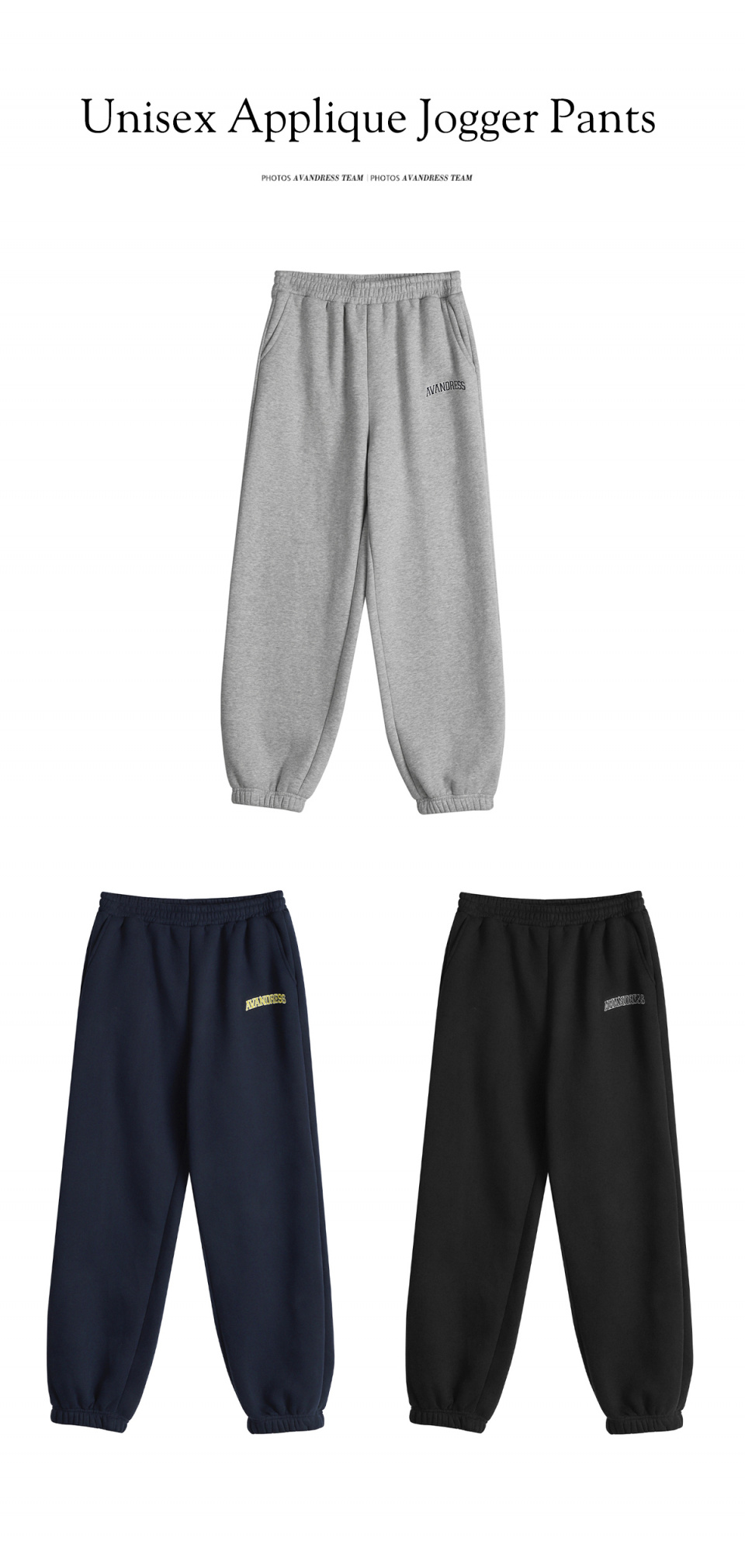 UNISEX APPLIQUE JOGGER PANTS - 3COL
