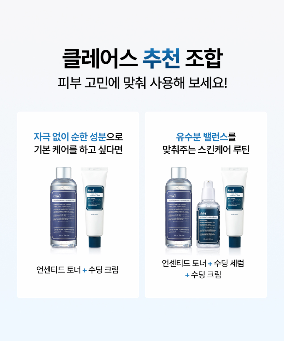 클레어스(KLAIRS)는 균형 잡힌 삶을 위한, 심플하지만 충분한 스킨케어를 제안합니다.
