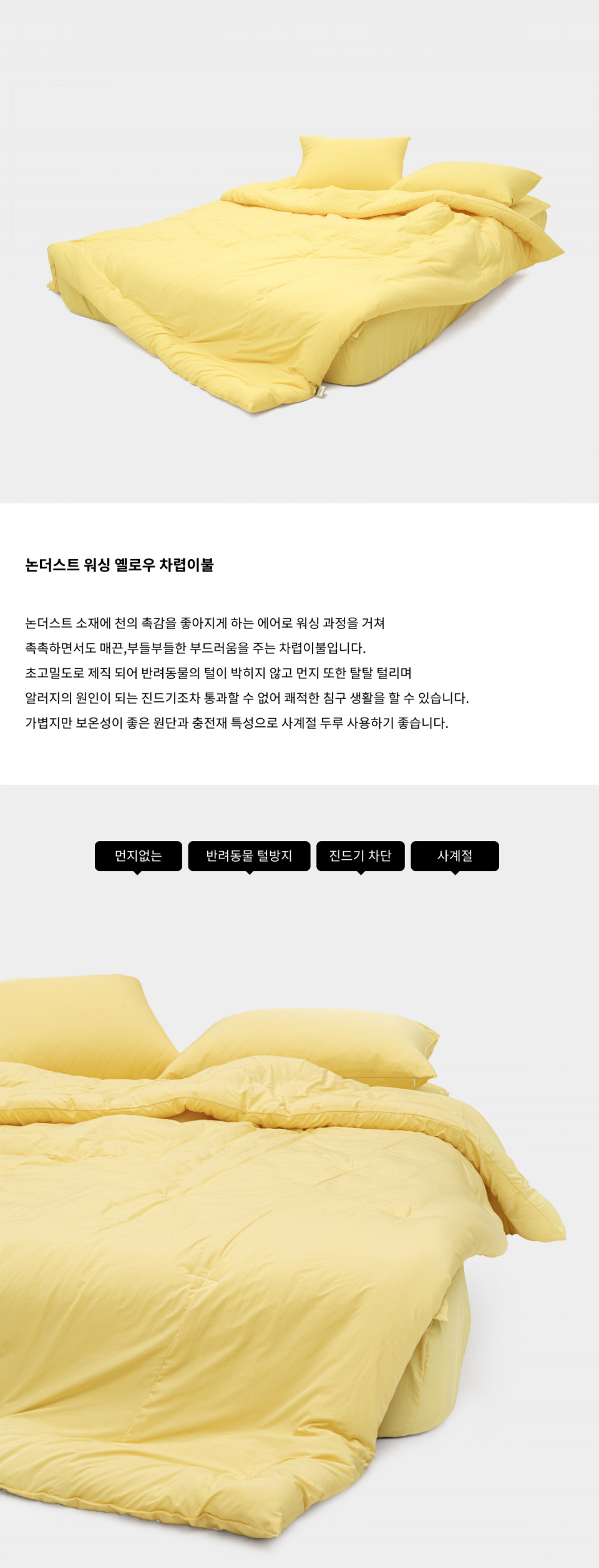 논더스트 워싱 옐로우 차렵이불 SS/Q/K