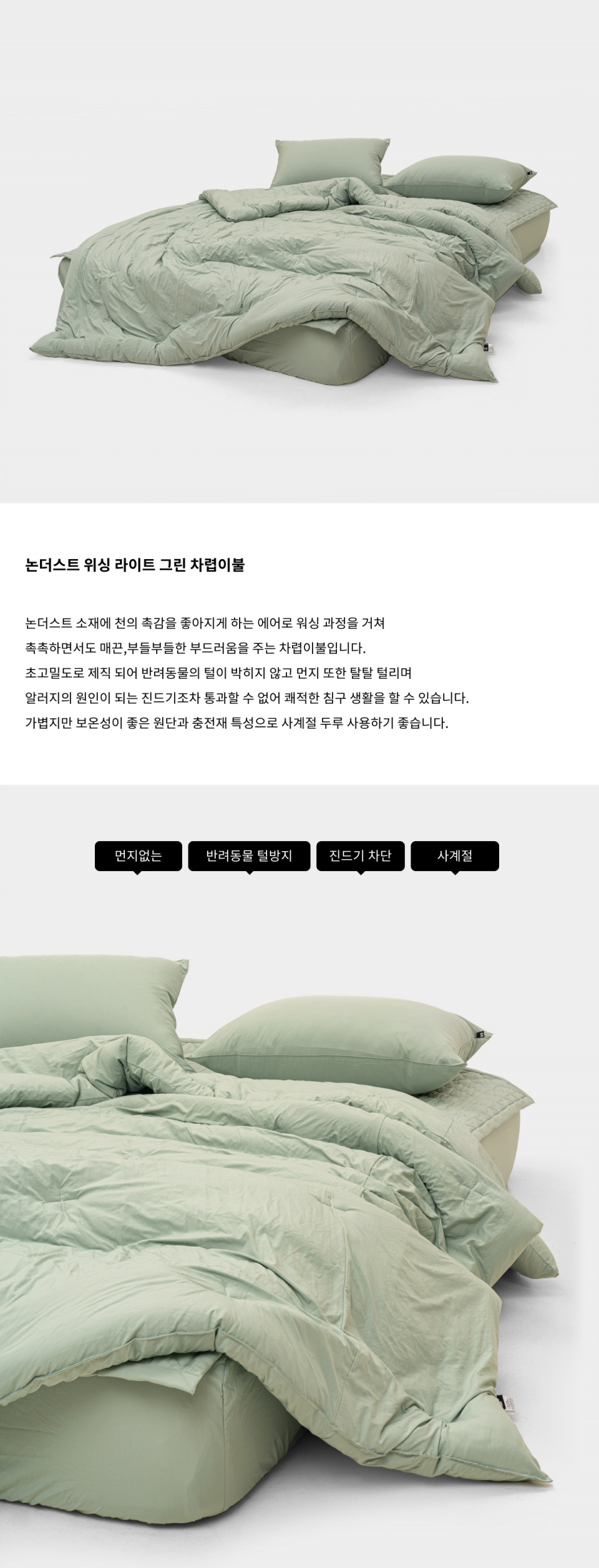 논더스트 워싱 라이트 그린 차렵이불 SS/Q/K