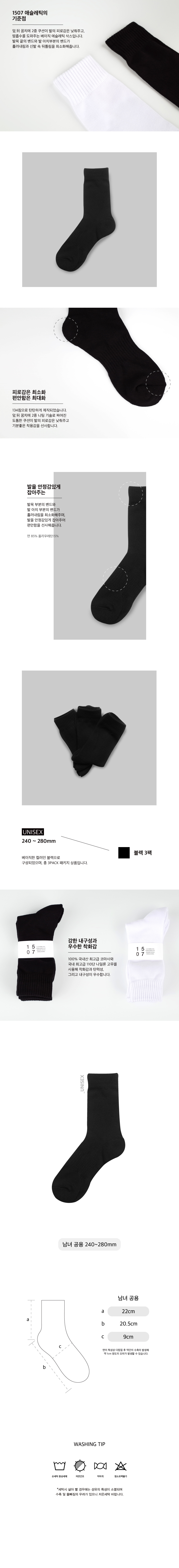 [3PACK] 1507 베이직 애슬레틱 삭스 _ 블랙