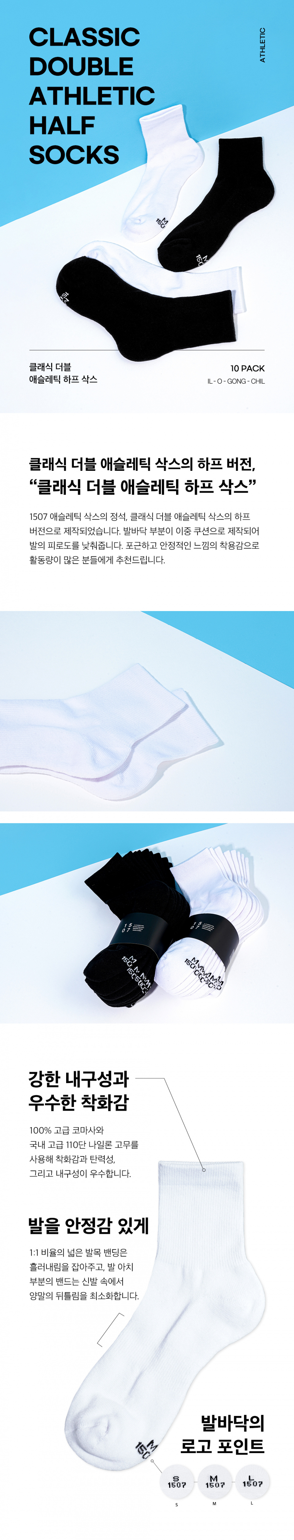 [10PACK] 1507 클래식 더블 애슬레틱 하프 삭스 - 스노우화이트/블랙