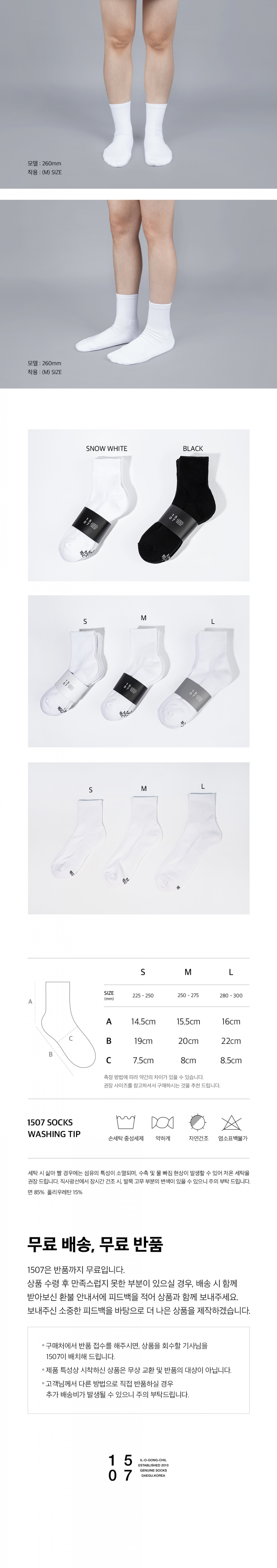 1507(일오공칠)은 그 시작인 창고 번지수 '1507'을 의미하며, 다양한 라이프스타일을 가진 사람들의 요구를 적극적으로 반영하고 그들의 더 나은 삶을 위해 노력하는 브랜드입니다. 2대에 걸친 양말 제작의 노하우로 높은 품질과 심플한 디자인의 양말을 제작하며, 우수한 품질과 합리적인 가격의 언더웨어를 제공합니다. 품질에만 집중하여 최소의 디자인으로 최대 퀄리티의 상품을 제작합니다.