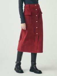 아웃포켓 코듀로이 롱스커트 와인 4W233Z001