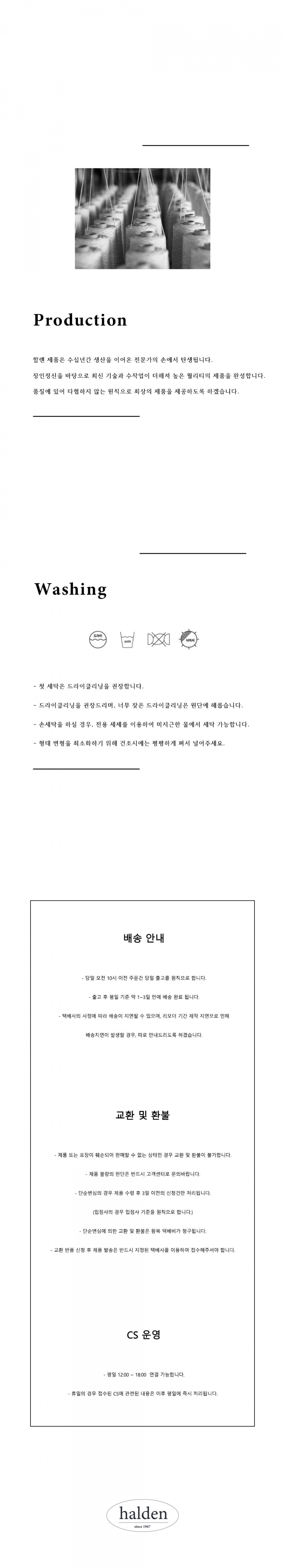 할렌(HALDEN)은 북유럽의 미니멀하고 따뜻한 감성에서 시작된 브랜드입니다. 노르웨이의 작지만 따뜻한 항구도시 '할렌'의 모습을 추구합니다.