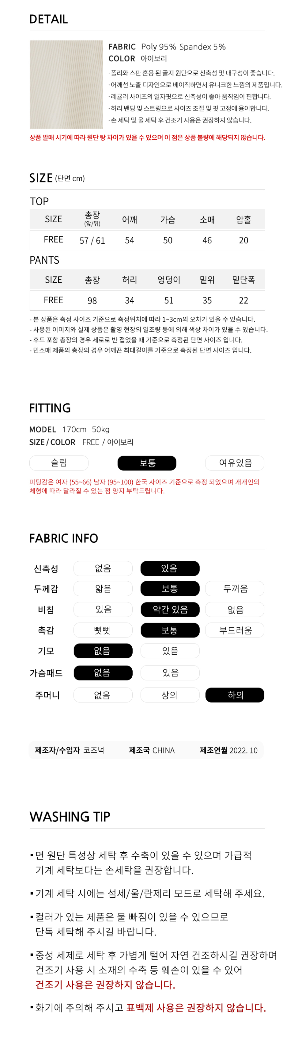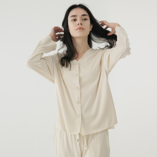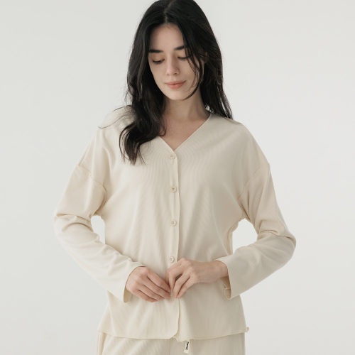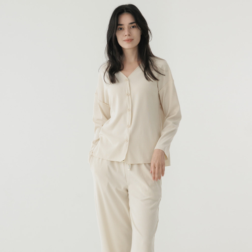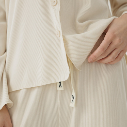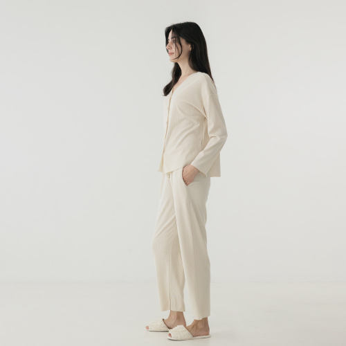 소프트 골지 홈웨어 여성 잠옷 세트 파자마 아이보리