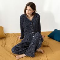 캡 내장 스토크 플라워 여성 잠옷 세트