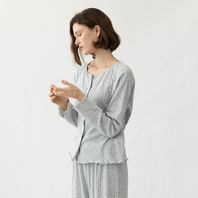 스트라이프 순면 긴팔 원피스 잠옷 브라운