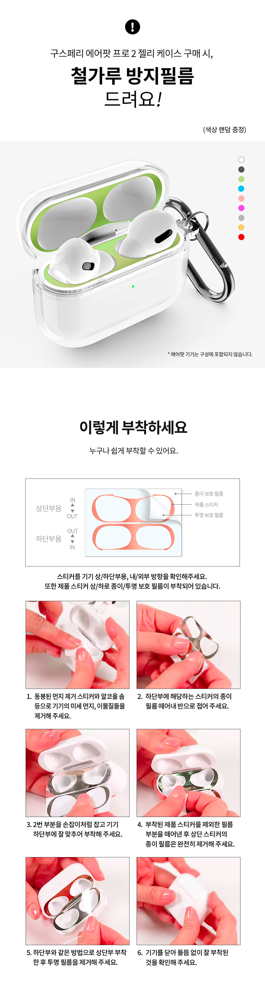 [미드나잇그린] 에어팟 프로 2세대 스무디 실리콘 케이스+키링+철가루 방지 스티커